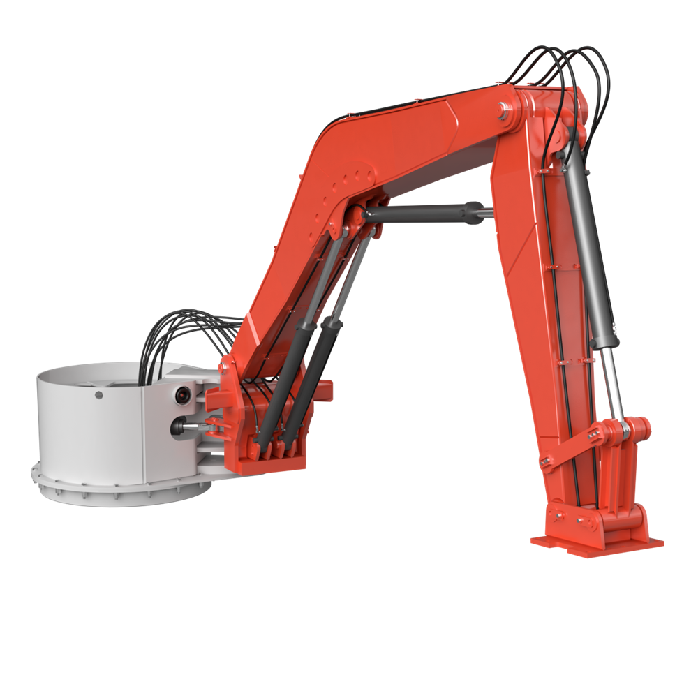 Boom swing with slew ring enables wider coverage and easier service access as well as constant swing torque.